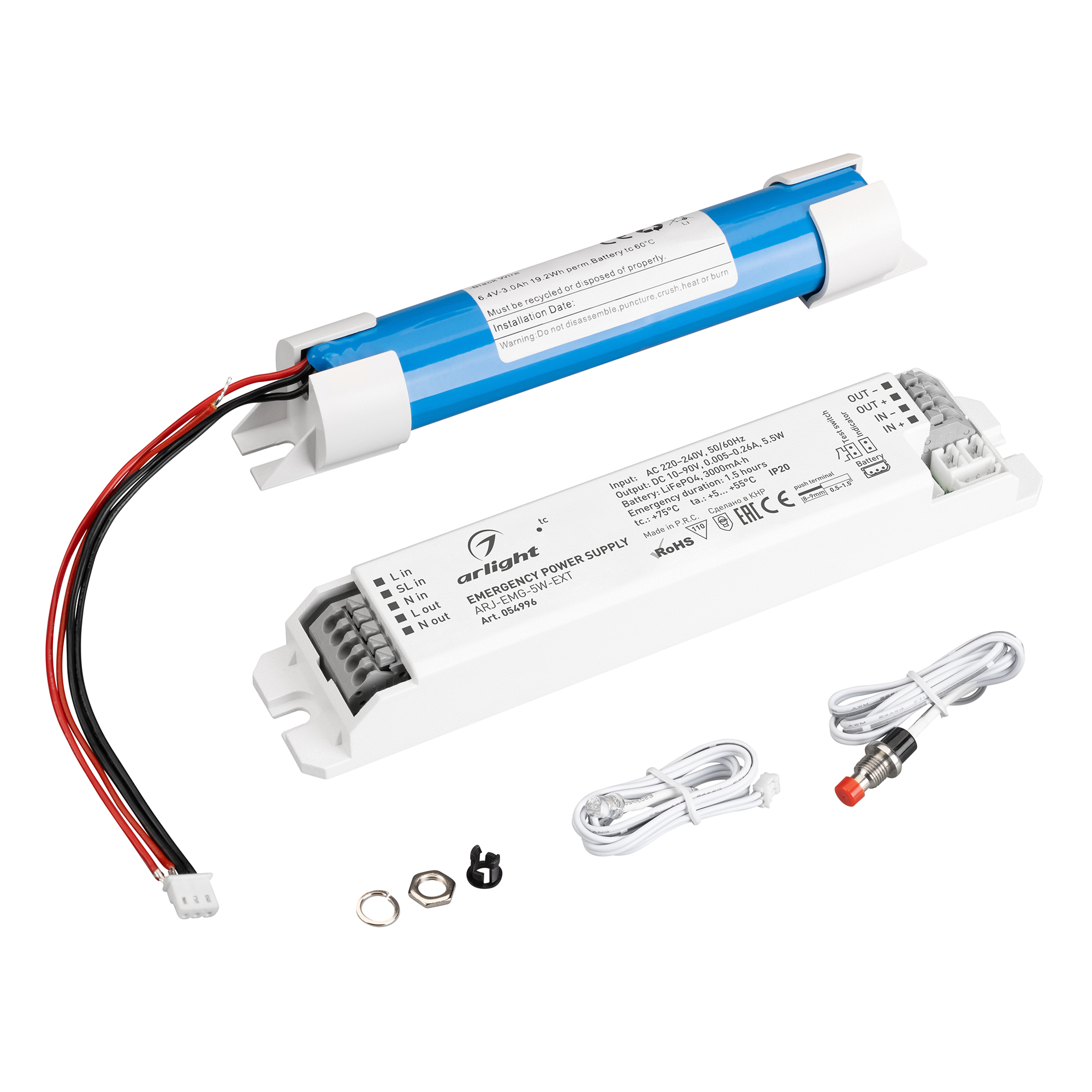 Блок аварийного питания ARJ-EMG-5W-EXT (10-90V, 1.5H, LiFePO4) (Arlight, IP20 Пластик, 3 года) 054996 в Курске