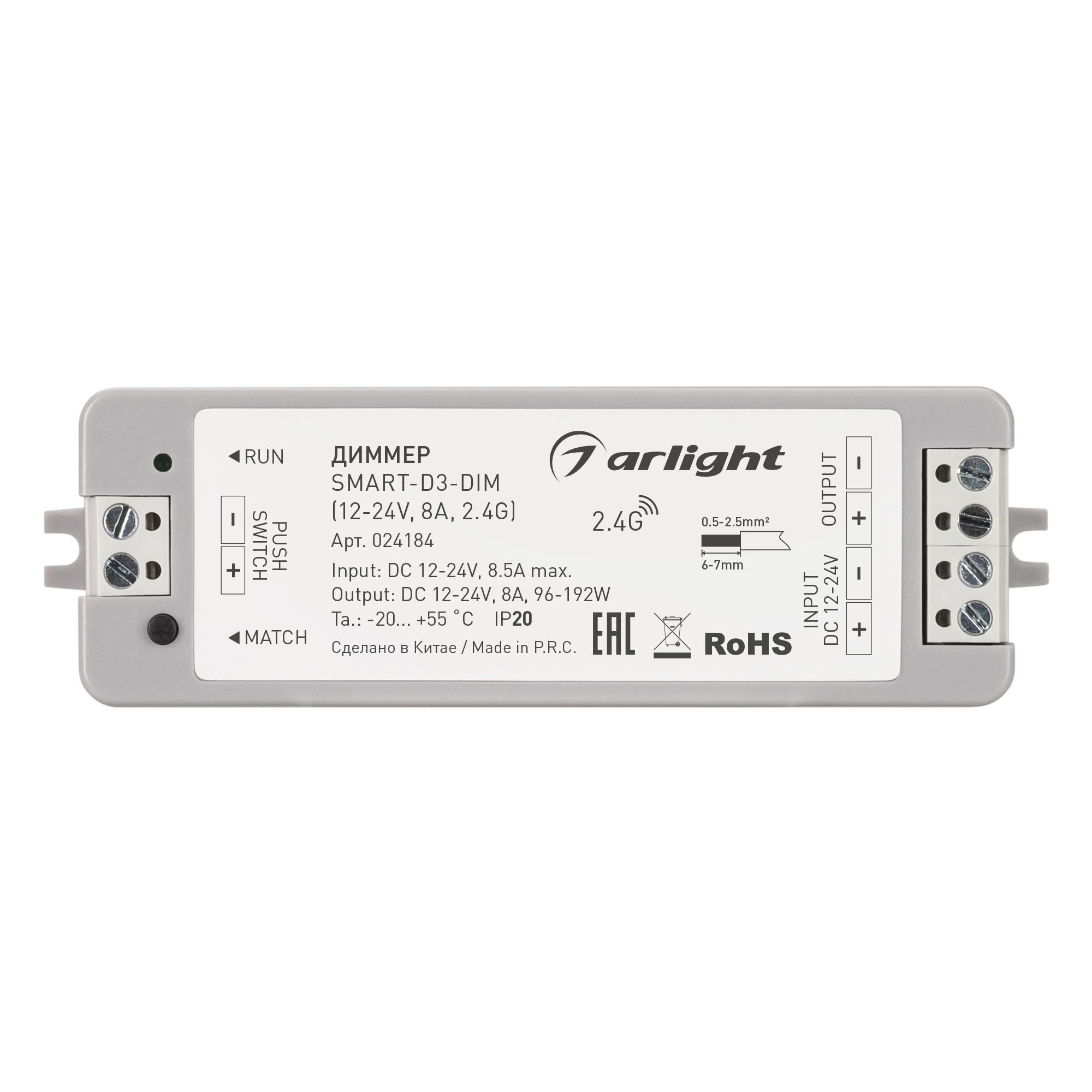 Диммер SMART-D3-DIM (12-24V, 8A, 2.4G) (Arlight, IP20 Пластик, 5 лет) 024184 в Курске
