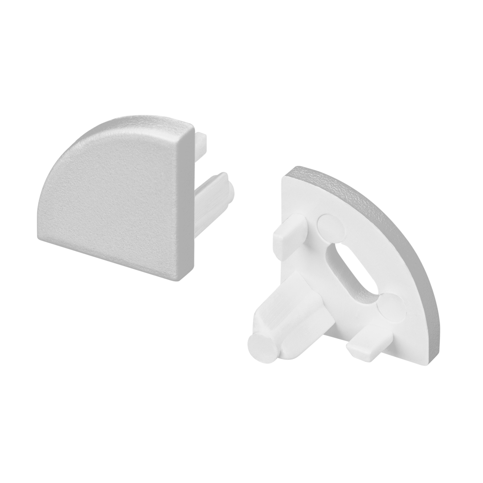 Пара заглушек (одна - с отверстием, вторая - глухая) для профиля ARH-KANT-H10. Цвет - серебристый. В комплекте 2 заглушки. Цена за комплект.