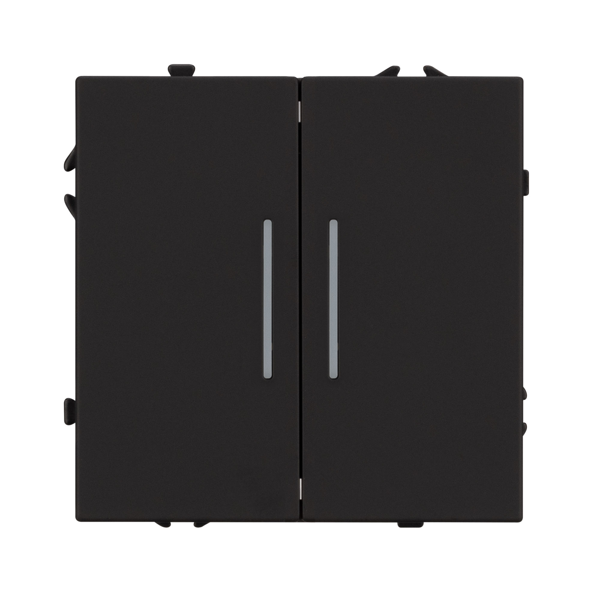 Механизм выключателя света клавишный на 1 пост 2 клавиши (непроходной). Цвет - черный, с Soft-Touch покрытием. Клавиша имеют активную LED подсветку - cинего свечения. Без фронтальной рамки. Уровень пылевлагозащиты IP20. Выключатель устанавливается в стандартный круглый подрозетник круглого сечения диаметром 60мм.