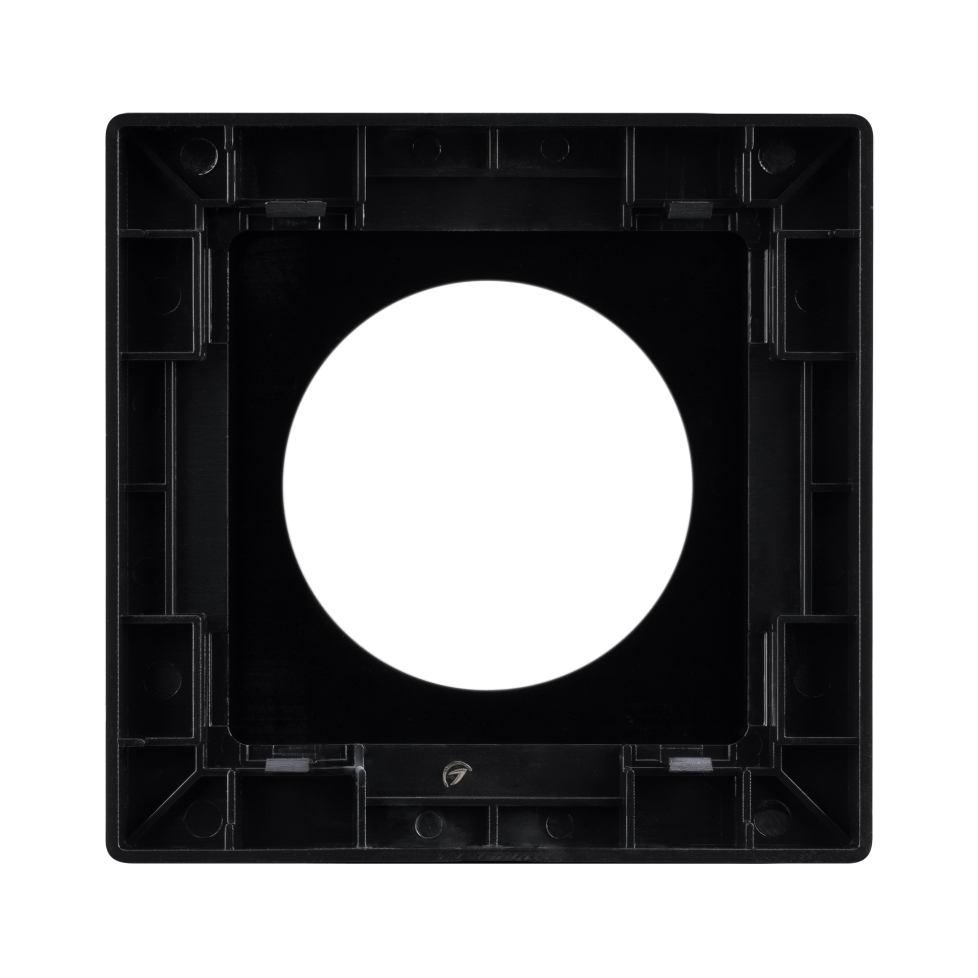 Рамка алюминиевая на 1 пост, под встраиваемый механизм. Вырез под функциональную часть - круг. Цвет - черный. Ориентации монтажа - горизонтальная и вертикальная.