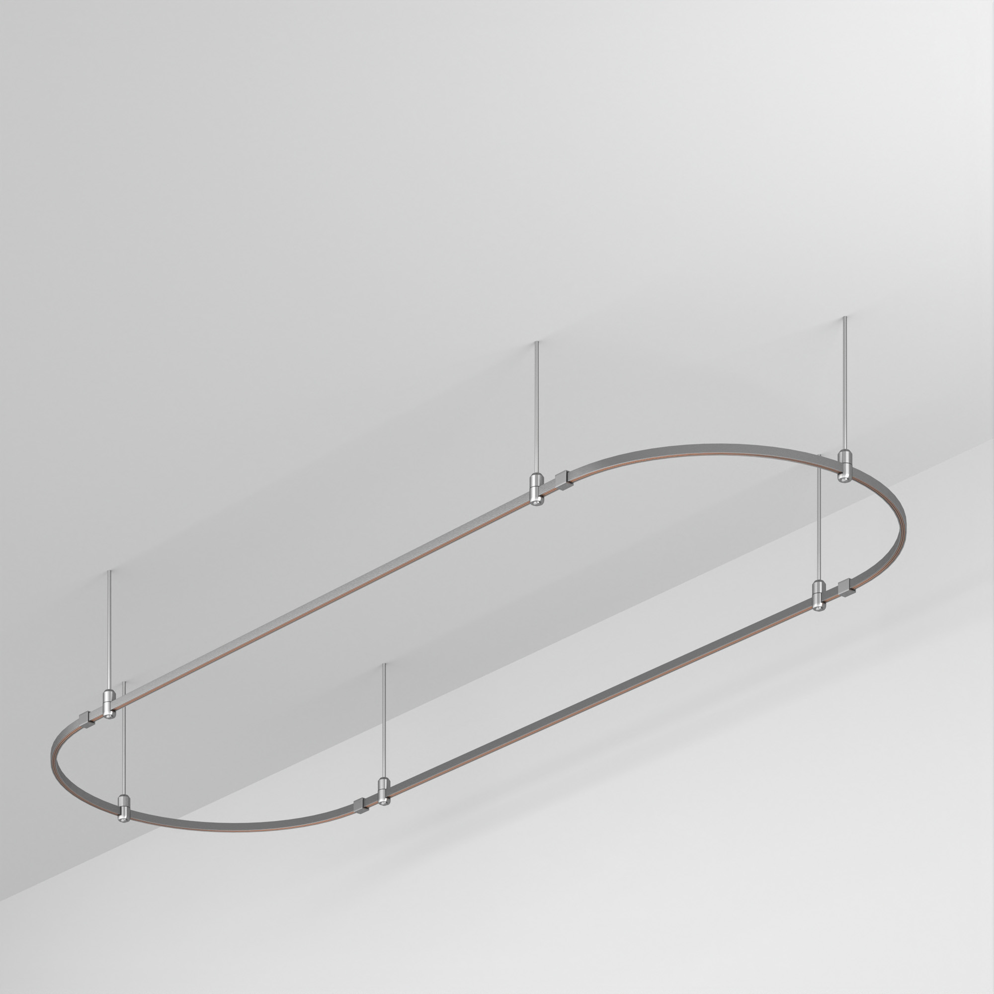 Подвесная конструкция APRIORI, форма овал. В комплекте треки с аксессуарами и жесткими подвесами длиной 800мм. DC48V. Материал алюминий, цвет титан. Размер ДxШxВ: 3000x1000x22мм. Светильники и источники питания приобретаются отдельно.
